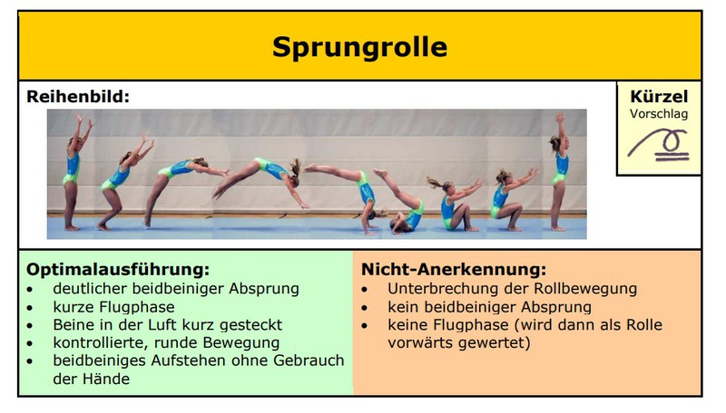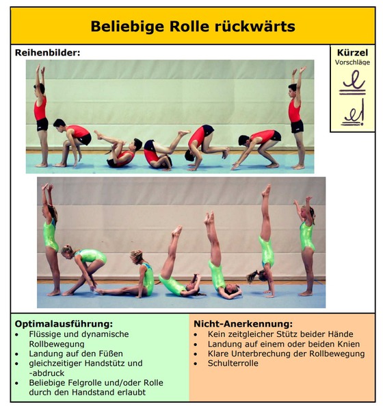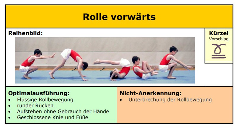 Schwingen, Rollen und Überschlagen. Die geläufige Position „Kopf oben – Füße unten“ wird bei solchen Übungen aufgegeben und verlangt ein hohes Maß an Orientierungsfähigkeit. Turnen fördert die